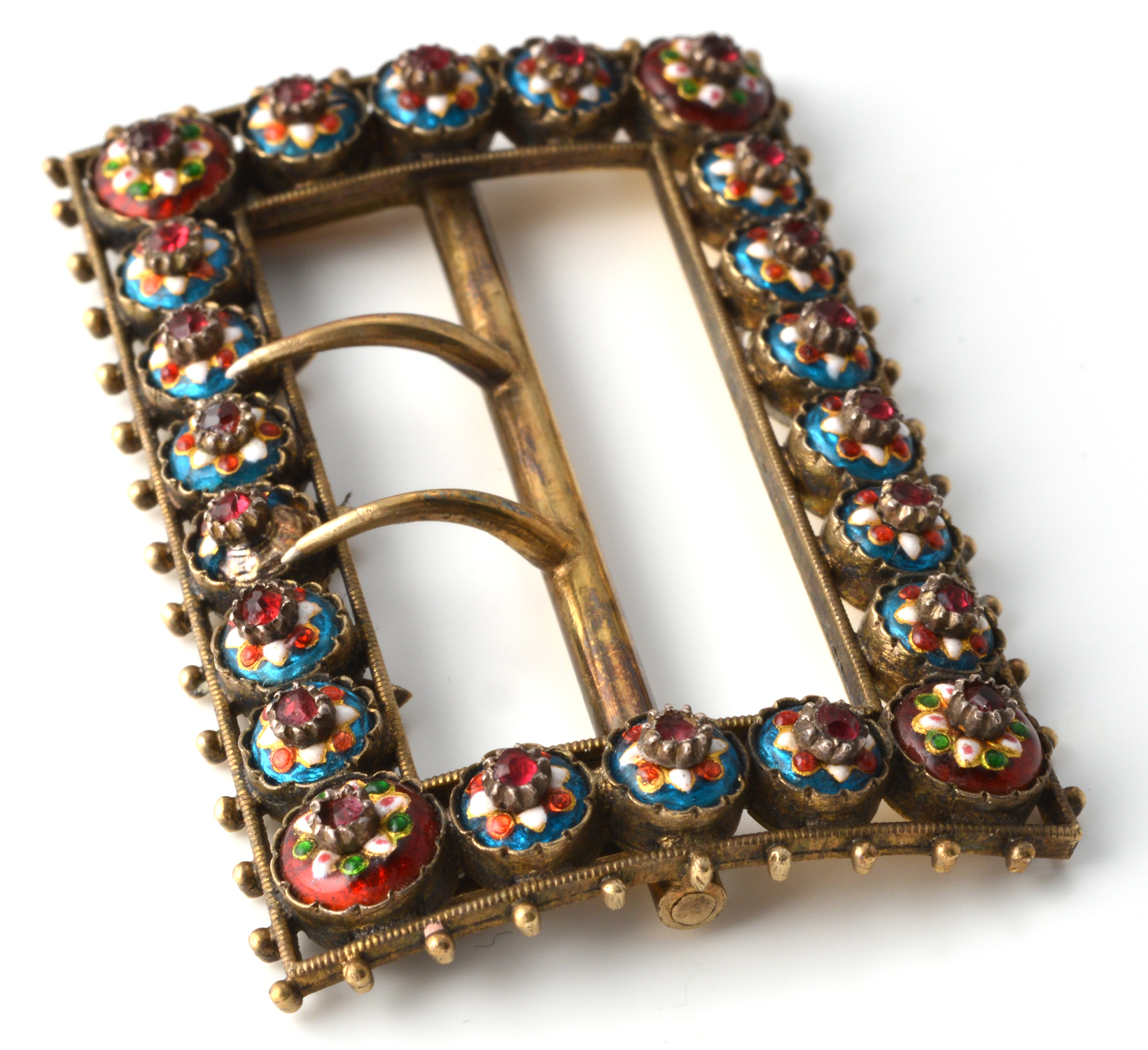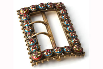 Unknown, Belt buckle, enamel-gold-cut glass-silver, L. 5,3 x l. 3,5 x ép. 1 cm.