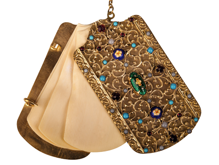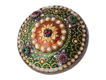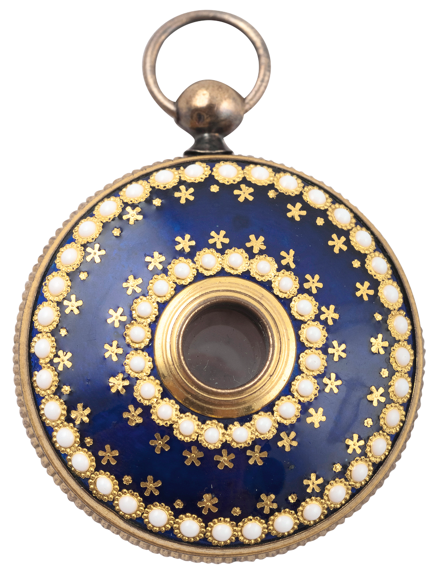 Modest in price, yet culturally relevant, Bressan enamels quickly became the privilege of the urban upper and middle classes. This can be seen in the vinaigrettes (bottles for smelling salts), opera glasses, dance cards, chatelaines or cufflinks worn to events of varying levels of importance, whether held in a private residence or in public places such as the theatre or opera. This was the ideal place to make an impression on one’s peers, by showing off personal wealth and taste; a lady’s style, a gentleman’s elegance. It was in these highly visible environments that artists such as Anna Pavlova, the local bourgeoisie and the upper class elite became important elements in the spread of Bressan enamels, which were even occasionally given as official presents.