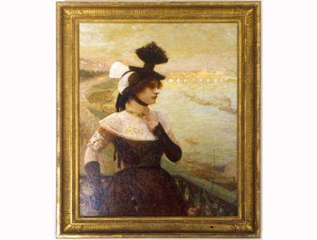 « Bressane au brelot devant le pont de Saint-Laurent », oil painting, h. 93 x l. 74 cm
