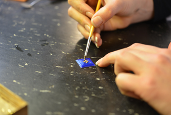 Enameller put down the “gold paillons” and the “central rosace” using her quill-pen.