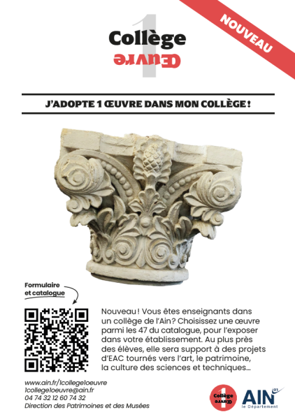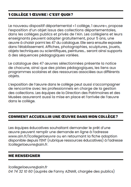 ou via le formulaire sur la page suivante : 1 collège, 1 œuvre : exposer des œuvres dans votre collège | ain.fr