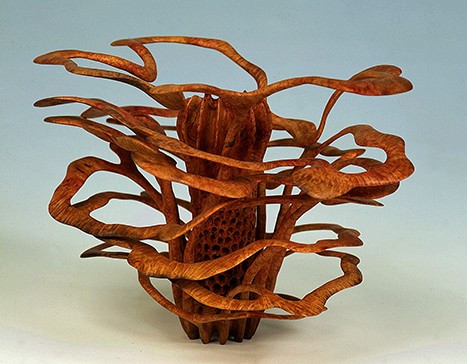 Les « créations organiques » mi-animales, mi-végétales aux volutes et filaments enchevêtrés, côtoient des jarres à collerettes évasées, révélant les lignes naturelles, la texture et la couleur du bois. Les mondes subaquatiques et floraux l'inspirent largement, aussi s'oriente-il, selon son expression, « vers des petites choses précieuses », telles les fleurs aux pétales serrés en corolles concentriques tournées dans des racines ou des loupes de pin, de bruyère ou de pistachier lentisque. Son approche très particulière du monde subaquatique influence ses oeuvres devenues créations coraliennes, algues mouvantes...