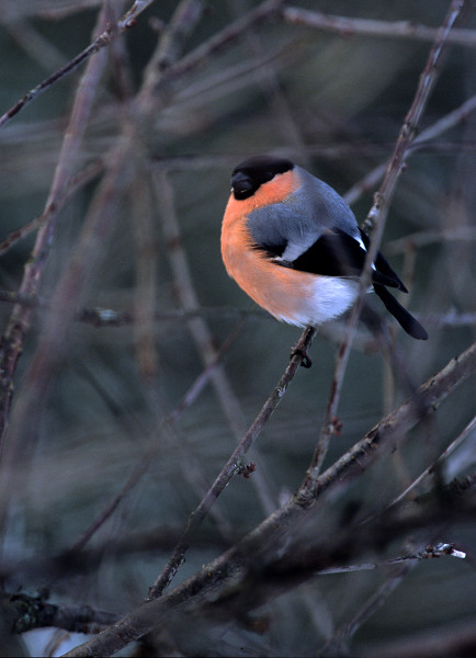 Le Bouvreuil pivoine (Pyrrhula pyrrhula) est un passereau assez trapu. Le mâle a la gorge, la poitrine et les flancs d’un rouge rosé, le reste de son corps est gris, noir et blanc.