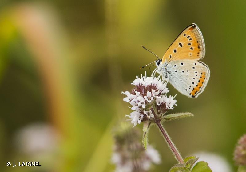 Le Cuivré des marais (Lycaena dispar) est un petit papillon de jour, appréciant les végétations humides et les marais. Lorsqu’il a ses ailes ouvertes, il est d’un orange cuivré vif, bordé de noir, fermées, la partie haute de l’aile est orange, et bleu-gris sur la partie basse, le tout, ponctué de taches noires bordées de blanc.