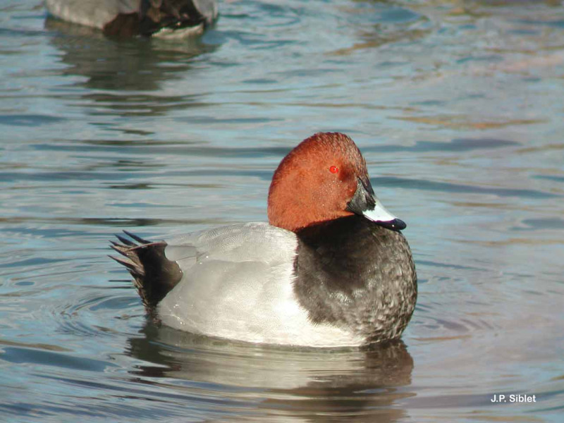 Les anatidés sont majoritairement des canards, aux pattes courtes palmées. Le fuligule milouin (Aythya Ferina) se distingue par sa tête brune – rousse, et ses yeux rouges. Son bec noir s’associe à sa poitrine noir brillant. Rarement seul, il fait souvent partie d’une grande troupe, pouvant dépasser les 500 individus. Excellent plongeur, il préfère cette technique à l’envol lorsqu’il est soumis à un danger.