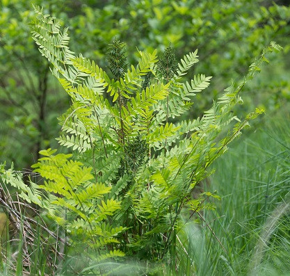 L’Osmonde royale est la plus grande fougère présente dans nos régions. Avec un potentiel de croissance de 2 à 3 mètres, cette fougère fait bel et bien penser à un petit arbre. Elle a d’ailleurs une longévité record qui tourne autour d’une centaine d’années ! Cette super-fougère se plaît dans les milieux très humides, voir même inondés, et nécessite un ensoleillement moyen, ni trop exposé, ni trop ombragé.
