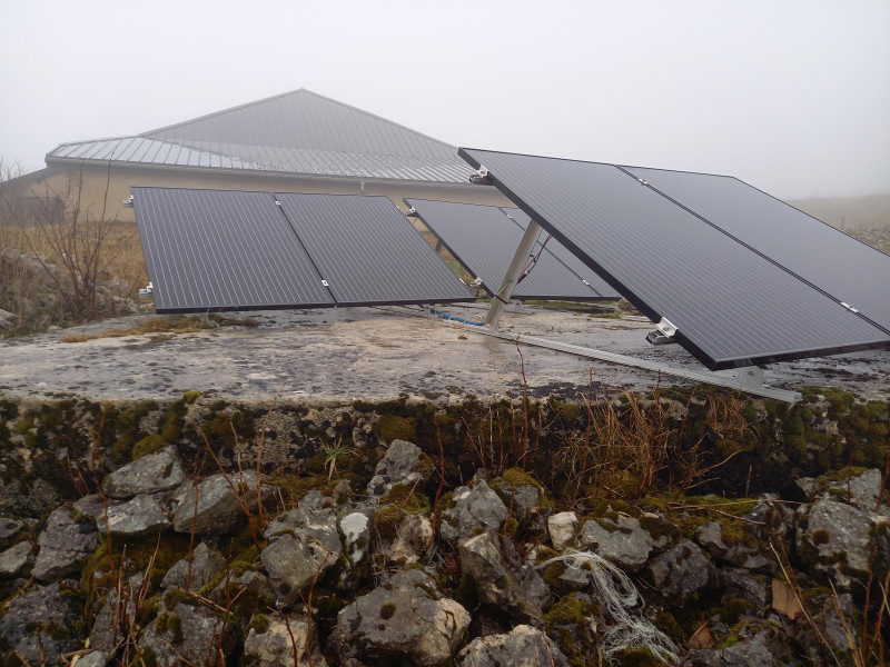 Des systèmes innovants et nomades (entièrement démontables) ont été installés pour équiper le chalet d’électricité (énergie solaire) et d’eau potable.
